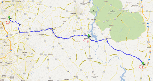 This is an ACP Brevet. The total time allowed from start to finish is 13.5 hours for the 200k and 20 hours for the 300k and 27 hours for the 400k. and 40 hours for the 600k and 75 hours for the 1000k. Riders must follow and complete the approved route. This route goes through several small towns in central North Carolina traveling along mostly low traffic roads. There may be some sections where traffic is high, so please ride carefully and safely at all times. The intermediate controls are where stores allow you to refuel with some basic supplies. There are also some other stores along the route where you may be able to stop and get limited nutritional supplies.