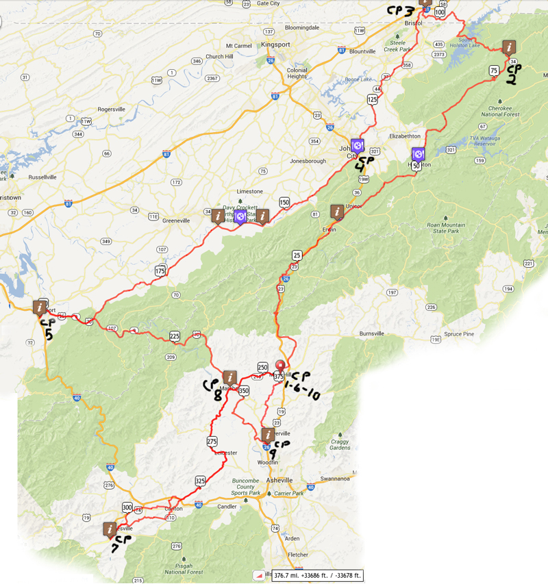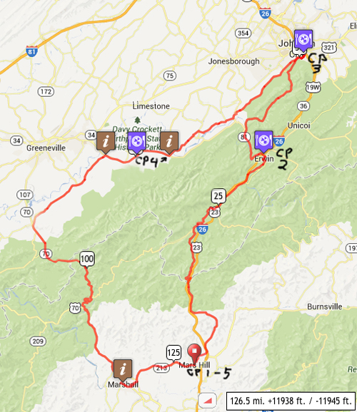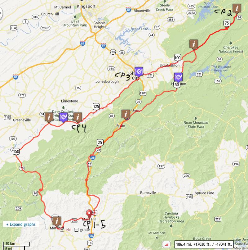 There is no official SAG on any of these Brevets. Starts will be from a parking lot on Mars Hill College, tbd and will be posted just before the brevets. Mars Hill, NCThe Mars Hill College in Mars Hill just off of Hwy 213 & I-26 will be the host for the start and finsh of all brevets We will have a staff room Saturday and Sunday nights in Mars Hill Details will be posted soon, If you think you need, pre-ride accommodations, an extended sleep period or have crew, MHC has agreed to give us a great rate of about $20 per person per night - Sorry no air conditioning rooms are left Please take care of their facilities during your stay! There are also a couple other chain hotels near the route in Mars Hill area.