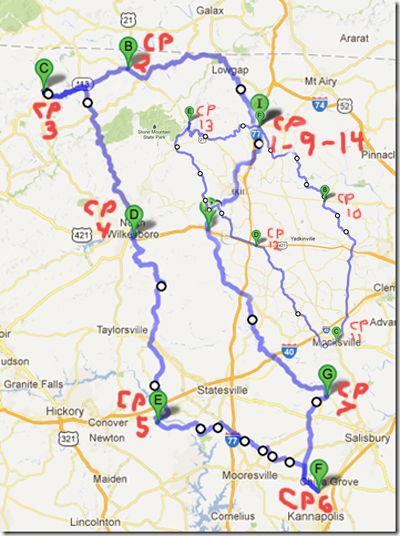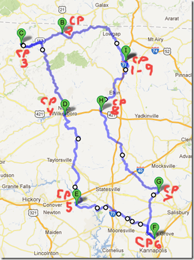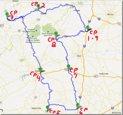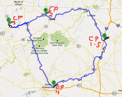 This is an ACP Brevet. The total time allowed from start to finish is 13.5 hours for the 200k and 20 hours for the 300k and 27 hours for the 400k. and 40 hours for the 600k and 75 hours for the 1000k. Riders must follow and complete the approved route. This route goes through several small towns in central North Carolina traveling along mostly low traffic roads. There may be some sections where traffic is high, so please ride carefully and safely at all times. The intermediate controls are where stores allow you to refuel with some basic supplies. There are also some other stores along the route where you may be able to stop and get limited nutritional supplies.
