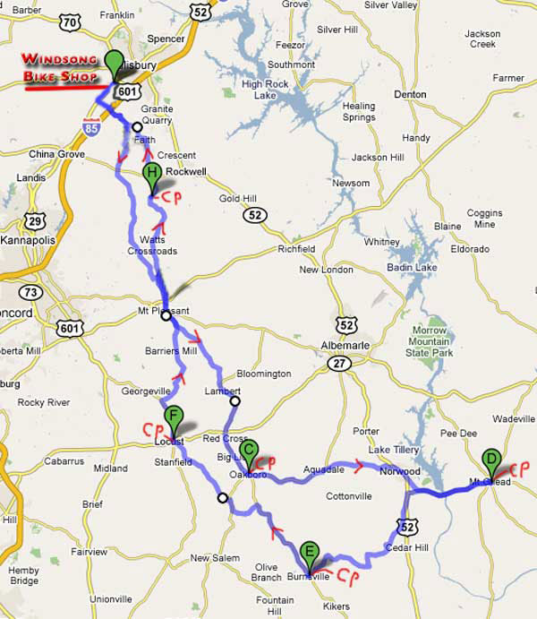 Start location will be at Windsong Bicycle Shop - Salisbury, NC