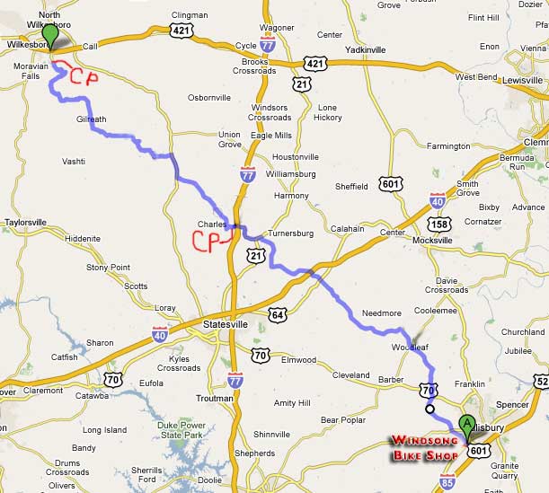 Start location will be at Windsong Bicycle Shop - Salisbury, NC
